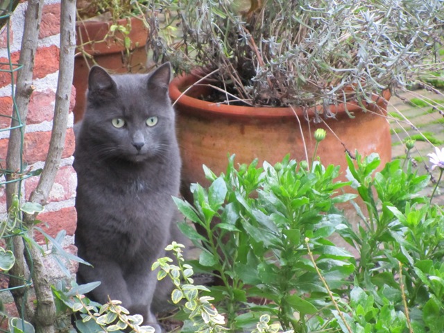 Aha, Harremans voor een raam! Nu werd het ons iets duidelijker, want Har zat op zijn beurt in de richting van de Schrik van de Buurt te loeren en zijn broer Panda zat wat meer achterin de kamer bovenop de leuning van de bank (u kunt dat nog net op de foto zien).