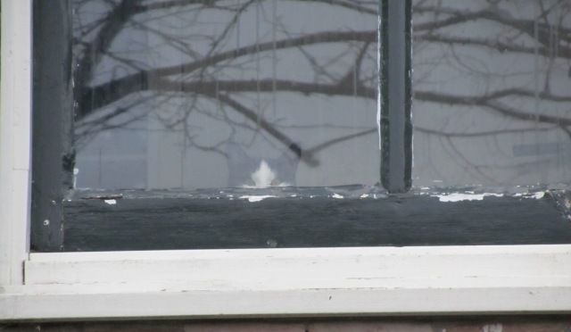 Ja, de jonge heer Boezelmans inderdaad! Hij was op onze bovenverdieping, had zich al eerder van de straat laten jagen en zat nu vanaf het logeerbed de boel in de gaten te houden.